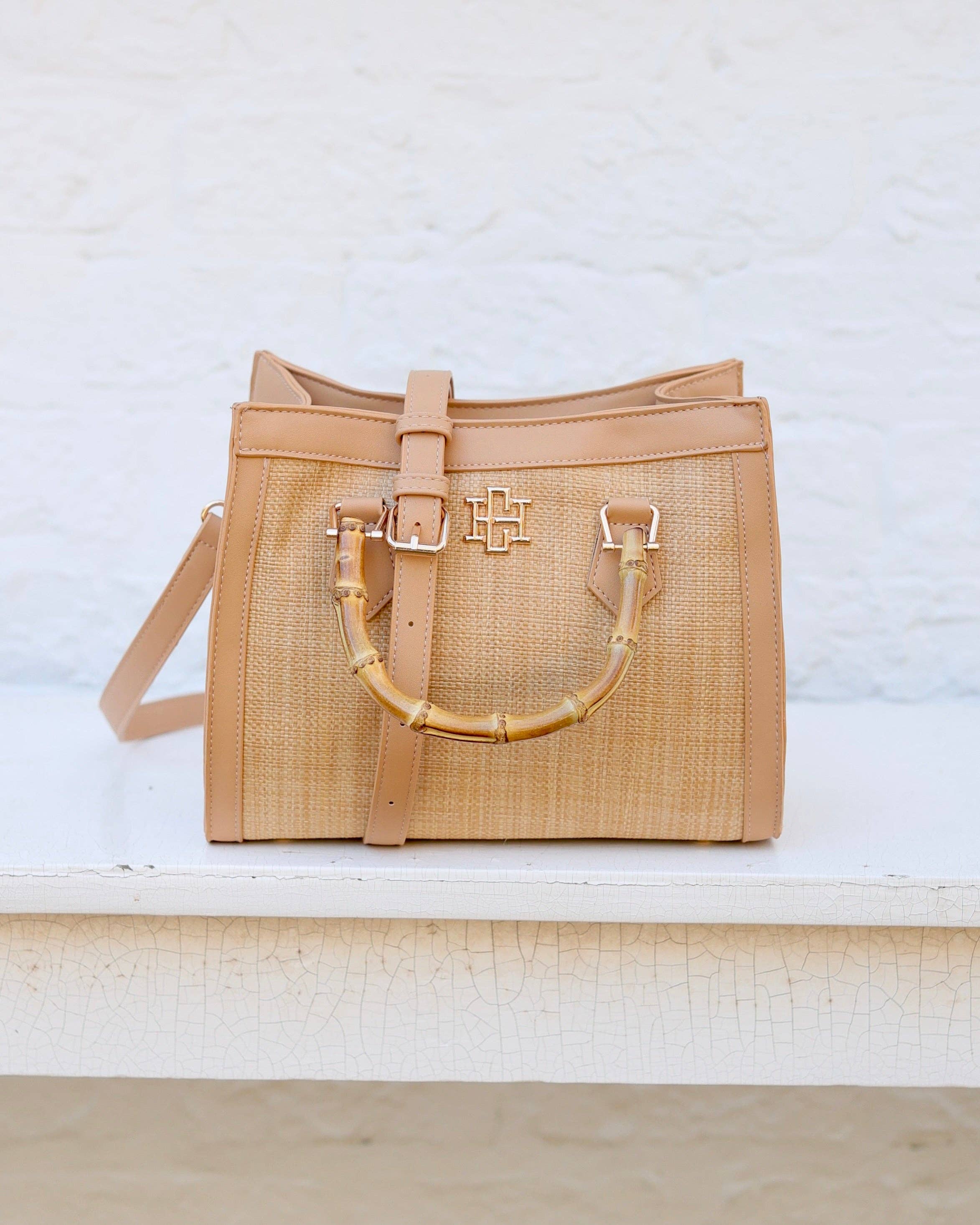 The Kennedy Tote in Natural is this season's must-have style. Crafted with elegant bamboo handles and a removable crossbody strap, this mini tote transitions effortlessly from day to evening. Whether you're carrying essentials to the office or out for the weekend, its chic silhouette and versatile design make it the perfect companion for any occasion.