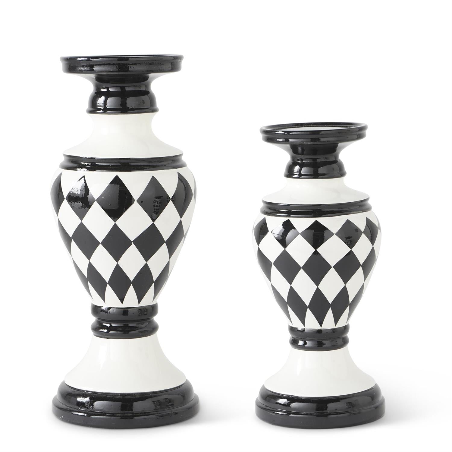 • Black & White Harlequin Ceramic Candleholder